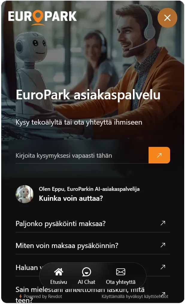 Revdot on rakennettu eurooppalaisille yrityksille, ja kävijöidesi tietosuoja on meille ensisijainen asia. Kaikki keskustelut tallentuvat turvallisesti EU:n sisällä ja chatbotin käyttö täyttää GDPR vaatimukset.